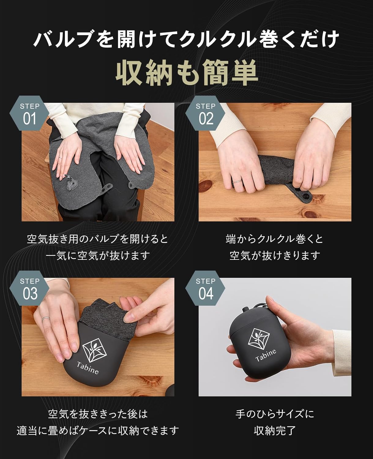 約5秒ほどで抜くことが出来ます。クルクル端から畳むことで簡単に空気を抜き切ることができ、収納できます。