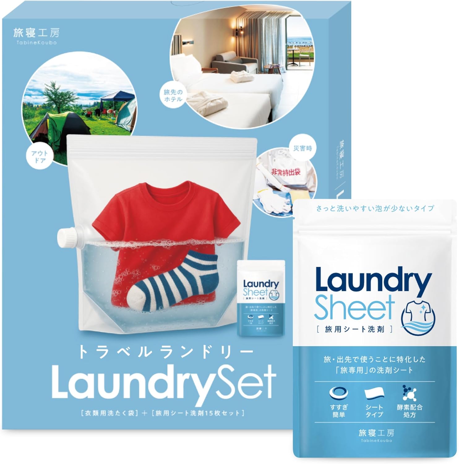 旅行 洗濯 【旅用シート洗剤付き】 洗濯袋 洗濯バッグ トラベル どこでも洗濯 手洗い洗剤 旅寝工房 tabine トラベルランドリー
